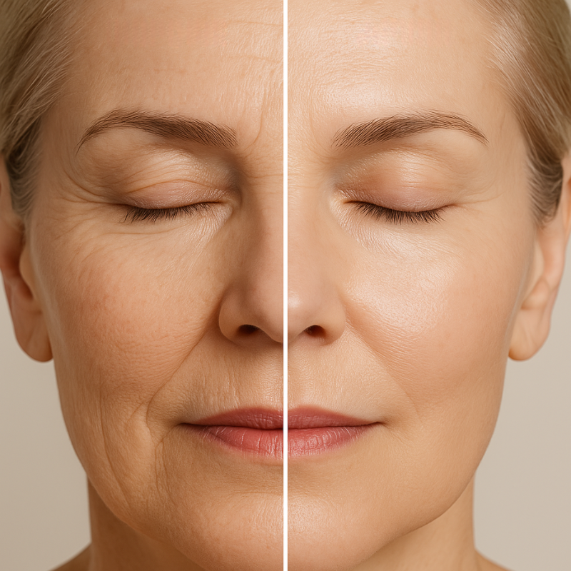 Lijntjes zichtbaar vervaagd — huid voelt soepel en sterk.