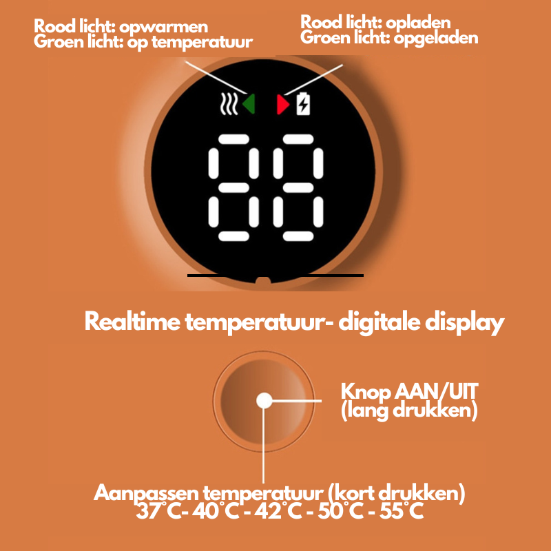✅ Nauwkeurige temperatuurregeling (37°C – 50°C)