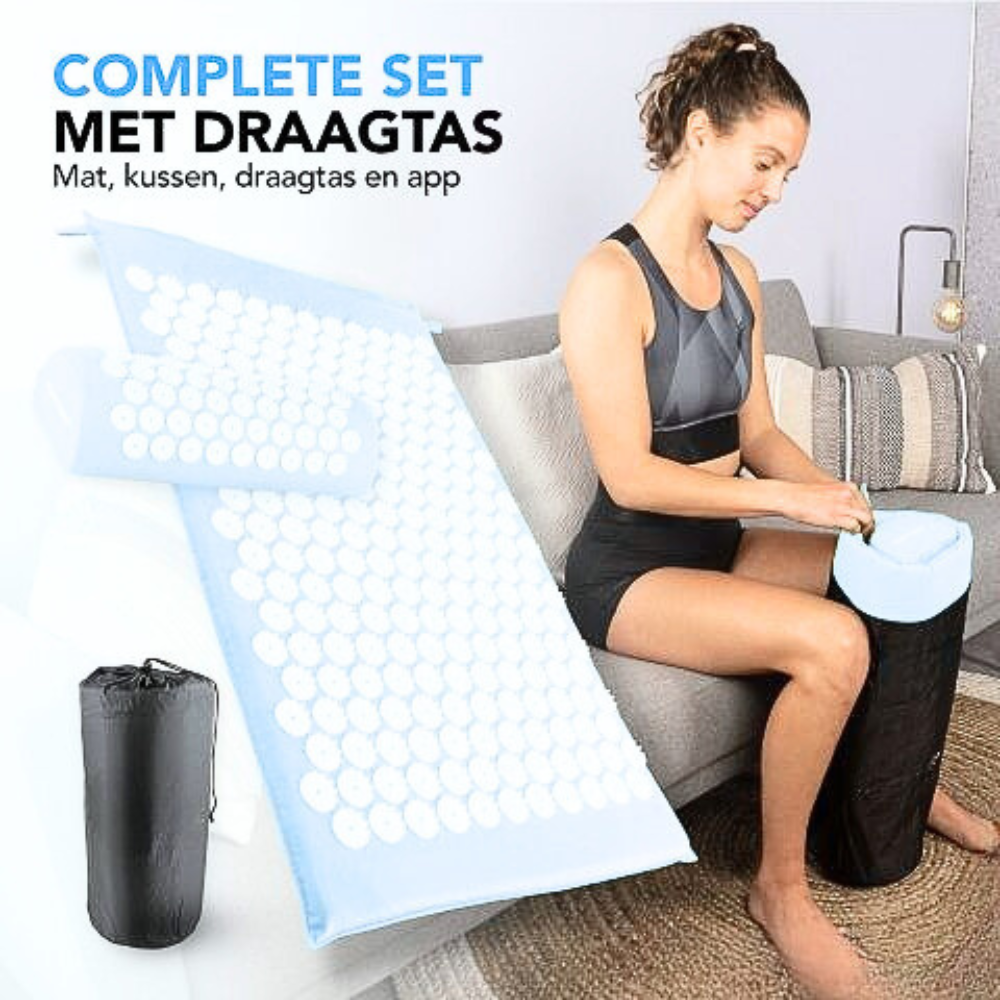 PAKKET IS INCLUSIEF: ✔ 1 x Zenn Spijkermat ✔ 1 x Zenn Acupressuur Kussen ✔ 1 x Draagtas ✔ 1 x Gebruikershandleiding